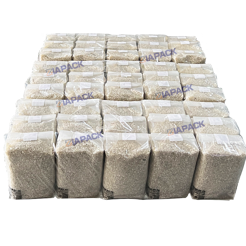 This line can also use for wheat flour packing ,rice packing and beans packing .The bag with flat bottom and top stick .Easy for stand on the shelves .