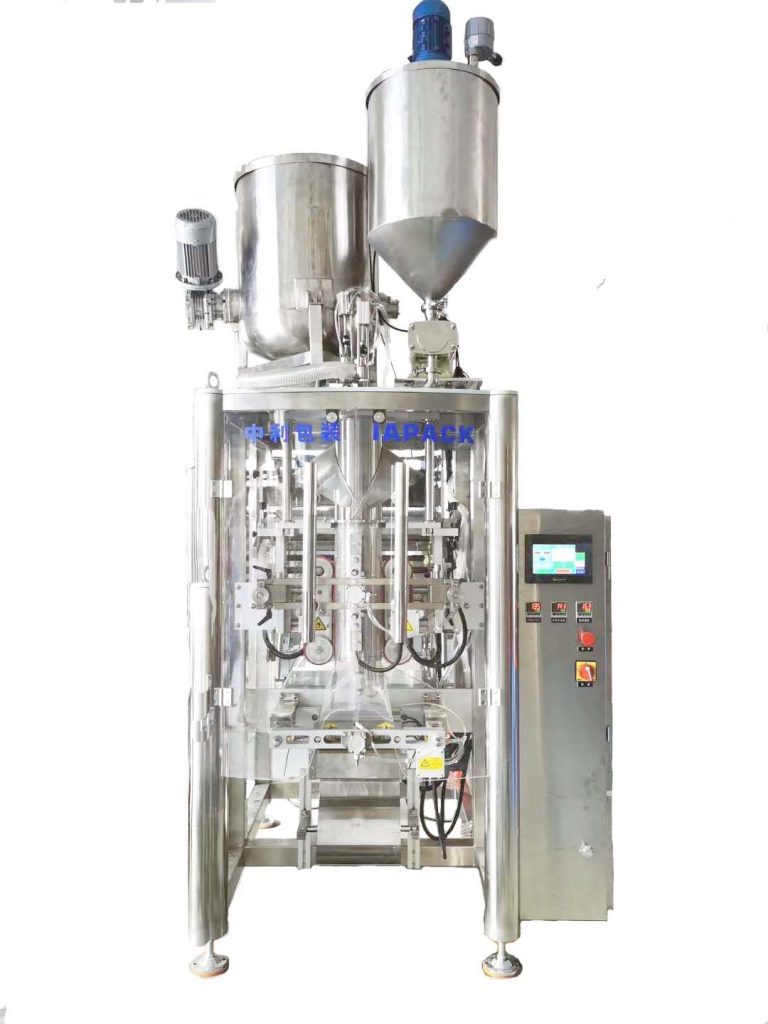 Denna enhet har utvecklats för behoven av flytande och viskösa produkter. Enheten består av en injekteringsmaskin och en förpackningsmaskin; förpackningsmaskinen har en enkel struktur och är lätt att använda; maskinen integrerar funktionerna för påstillverkning, fyllning, försegling och räkning. Den använder en servomotor för att dra filmen och har en funktion för automatisk avvikelsekorrigering.