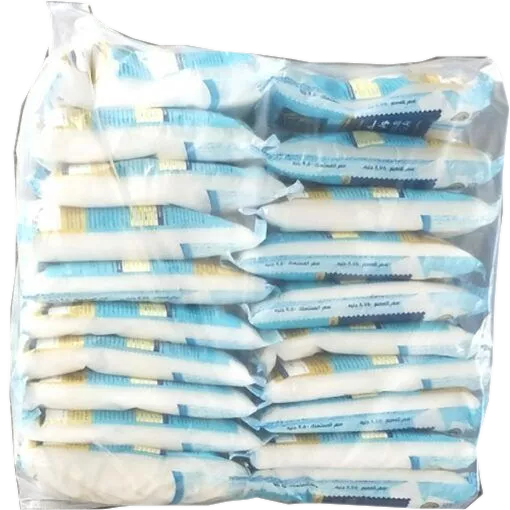 Denna linje är specialdesignad för sockerrissalt och vetemjöl och spannmålsproduktionsfabrik. Hela linjen kan automatiskt väga den lilla vikten av rissockersalt vetemjöl eller mjölkpulver, forma påsen som fyller produkten och försegla påsen och sedan transportera påsarna till balpressmaskin för inpressning till stor PE-påse.