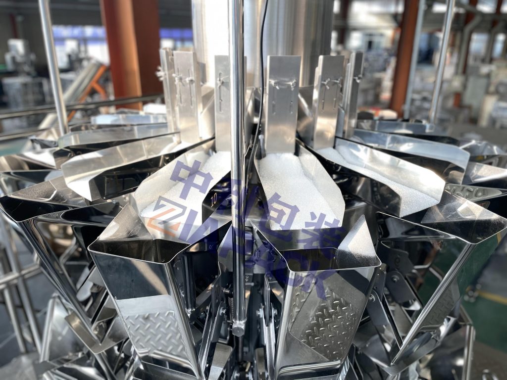 läcksäker Multihead Weigher Machine är lämplig för vägning av små granulat som ris, socker, fint te, tvättmedelspulver etc.