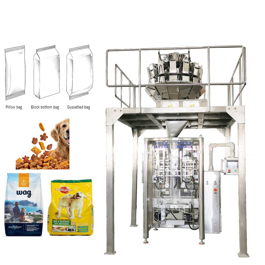 Denna maskinenhet består av en VFFS520 automatisk vertikal förpackningsmaskin, en ZR14-1,6L flerhuvudsvåg, en DT5 hinkhiss. Den kan automatiskt realisera funktioner för materialmatning, vägning, påstillverkning, fyllning, förpackning, utskrift, skärning, etc.