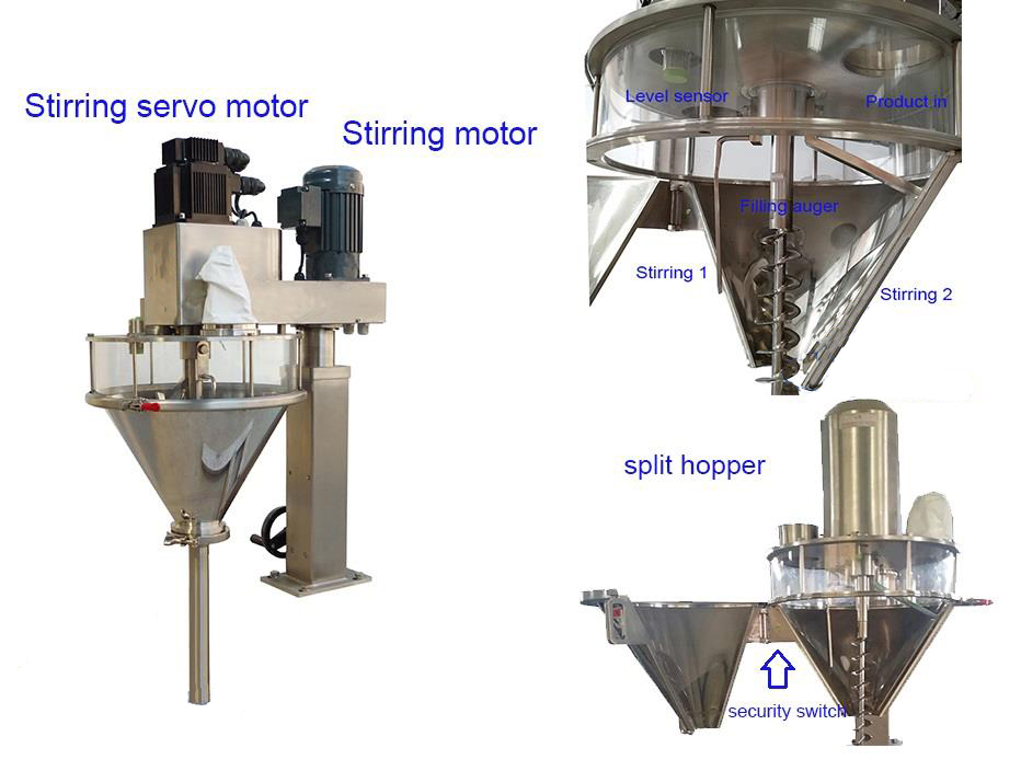 Denna serie Auger Filler utrustar sidan öppen behållare för enkel rengöring, underhåll.