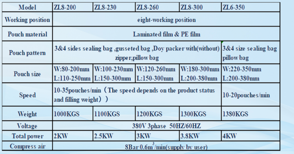 - Helautomatisk intermittent roterande förtillverkade påsar för utmatning, öppning och stängning av maskin kombinerat med automatisk skruvmatare, bulkskruvmatare och produktbulkbehållare