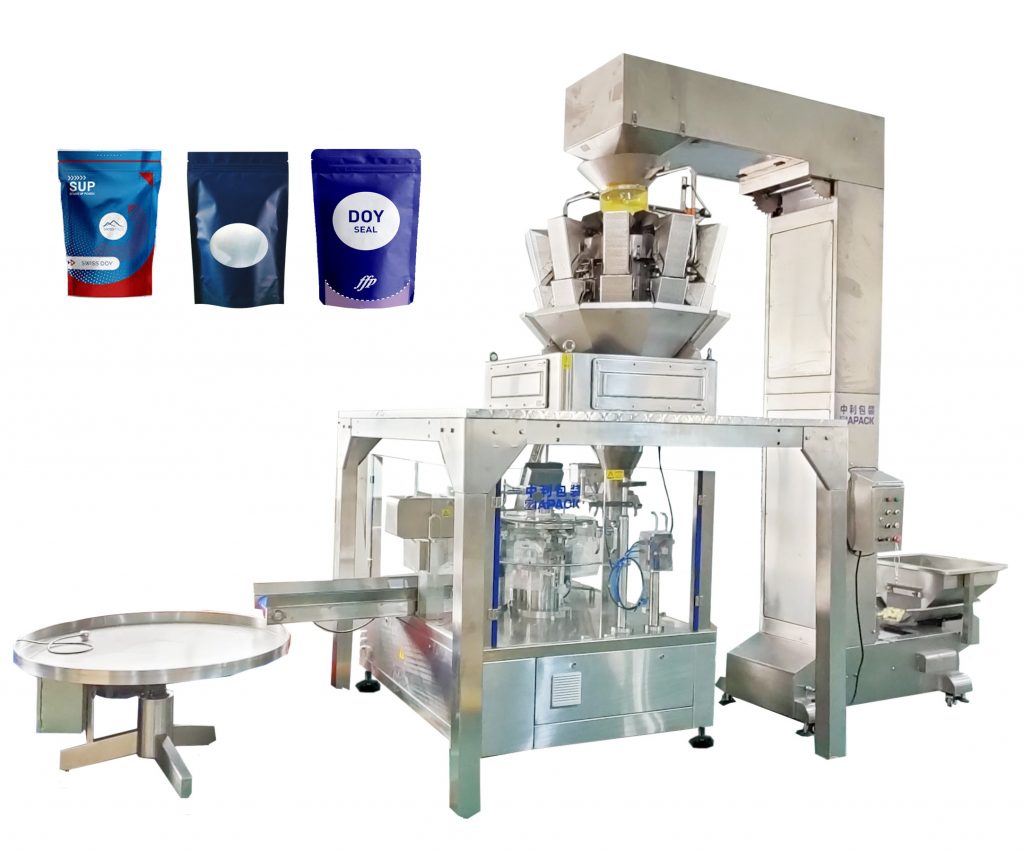 Prefabricerade påsefyllnings- och tätningsmaskin, som består av 8 arbetsstationer med effektivitet och stabilitet, betonar paketet med stand-up-väska, dragkedja, tygväska och olika färdiga påsar. Samarbetat med olika doseringssystem (kombinationsviktare / linjärviktare / skruv / kolvfyllare) och automatiska lyfttransportörer appliceras det i stor utsträckning på granuler, vätska och pulver.